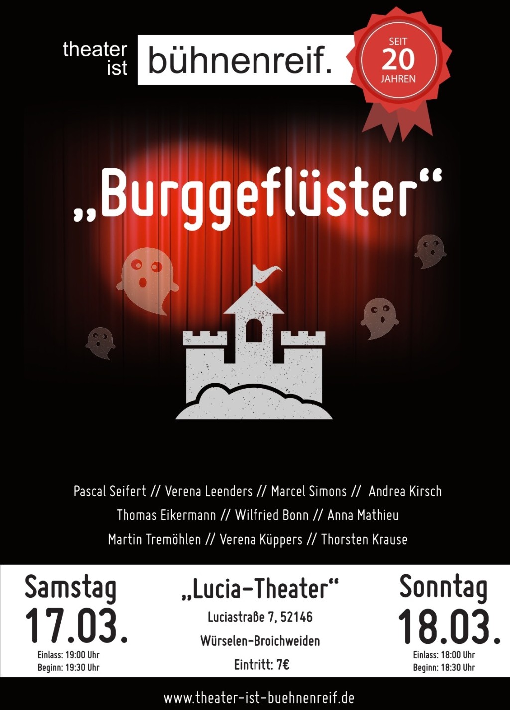 Burggeflüster – Aufführung im März 2018 im „Lucia-Theater“ in Würselen, Broichweiden.